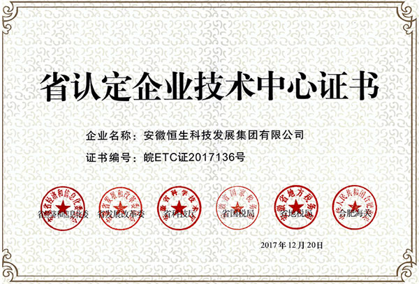 恒生集團(tuán)企業(yè)研發(fā)中心被認(rèn)定為安徽省第26批省認(rèn)定企業(yè)技術(shù)中心
