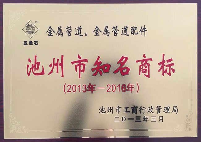 五色石金屬管道、金屬管道配件池州市知名商標(biāo)